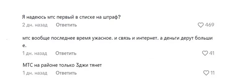 А вопрос-предложение «Будут штрафовать МТС? Давно пора» — более 3000 лайков.