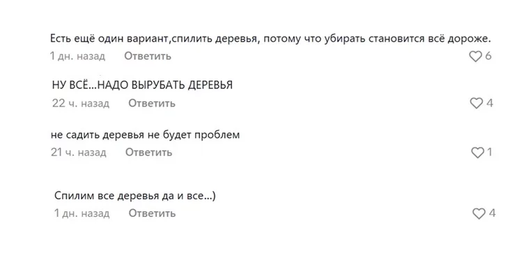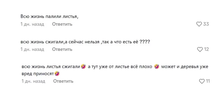 «Всю жизнь листья сжигали, а тут уже от листьев все плохо. Может, и деревья уже вред приносят».