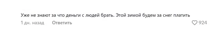 «Уже не знают, за что деньги с людей брать. Этой зимой будем за снег платить». Это заявление набрало свыше 900 лайков.