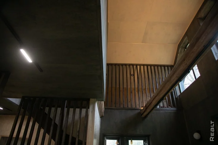 Внутри от старой дачи почти ничего не осталось — разве что потолочные балки над двусветной гостиной сохранили, отшлифовали и оставили открытыми.