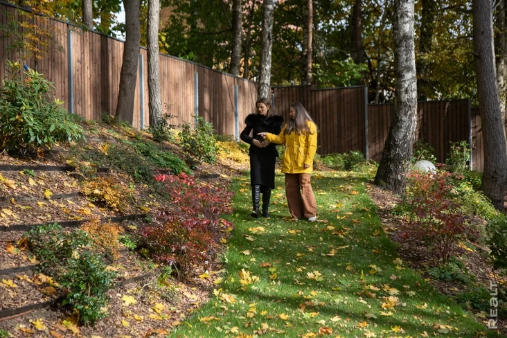 Журналисты застали этот молодой сад в момент максимальной декоративности — даже в пасмурный день он радует глаз яркими красками. Мастера ландшафта обещают, что и зимой за окнами дачи будет красиво. И с каждым годом сад будет прибавлять в объеме — для полного смыкания посадок и формирования завершенного вида саду потребуется около 2−3 лет.