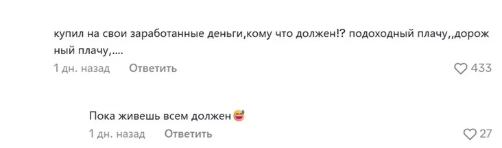 «Купил на свои заработанные деньги, кому что должен!? Подоходный плачу, дорожный плачу».