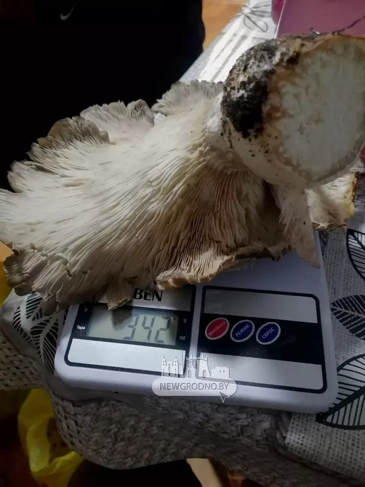 Да, возле деревни Огородники Гродненского района нашли действительно гигантский гриб весом 342 грамма, а любитель тихой охоты за час насобирал два пакета вёшенок.