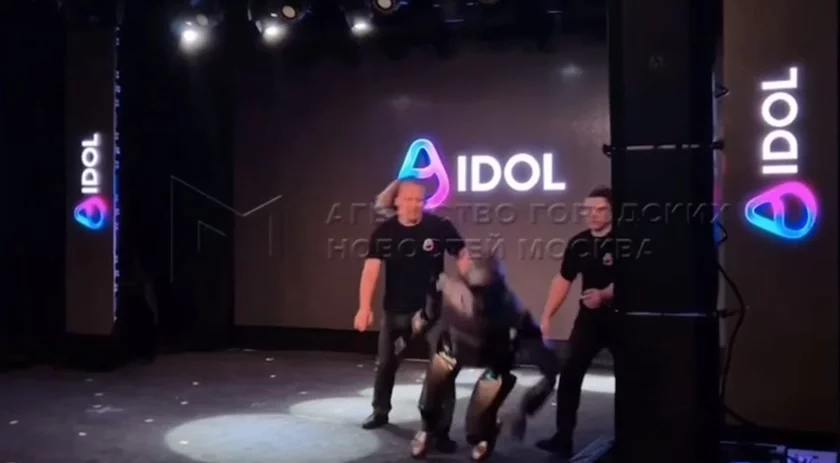 Во время второго выхода на сцену робот Айдол не без посторонней помощи смог удержаться на ногах.