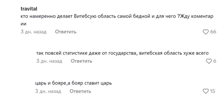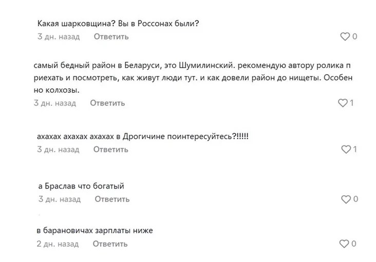 «Самый бедный район в Беларуси — это Шумилинский. Советую автору ролика приехать и посмотреть, как живут люди здесь и как довели район до нищеты. Особенно колхозы».