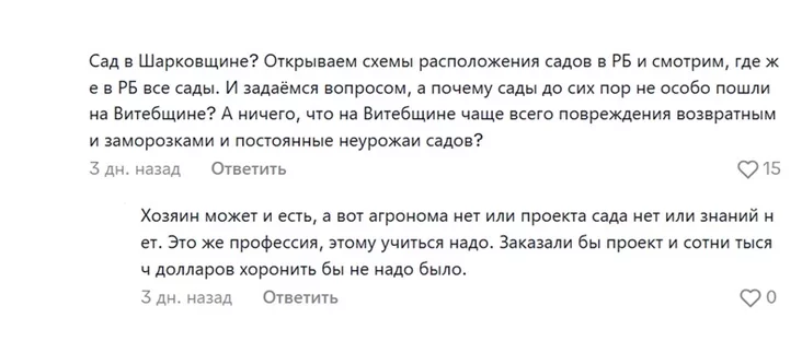 «Сад в Шарковщине? Открываем схемы размещения садов в РБ и смотрим, где же в РБ все сады. И задаёмся вопросом, а почему сады до сих пор не особо пошли на Витебщине? А ничего, что на Витебщине чаще всего повреждения возвратными заморозками и постоянные неурожаи садов?