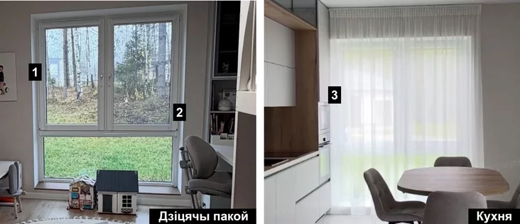 Два дополнительных боковых окна кухни с видом на детскую горку позволили точно сузить выбор. На планах домов «Брестжилстроя» только в варианте со скатной крышей на этой стене запроектированы два окна, а не одно узкое, как в варианте с плоской крышей. Таким образом, остались только три возможных дома.