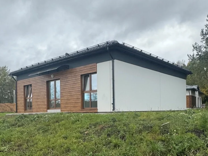 Для «Брестжилстроя» проект не новаторский, оба варианта одноэтажных панельных домов уже были реализованы в Жабинке и Малых Мотыкалах Брестского района, правда, без таких смелых решений, как окна до пола.