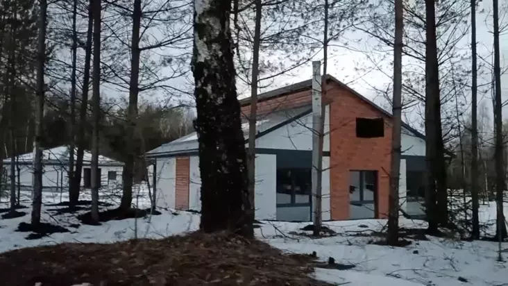Детали с кадров внутри дома позволили сузить поиск еще больше. В детской комнате за окном виден небольшой лоскут из елок и берез, за которым — открытая площадка и силуэты двухэтажных черно-белых домов вдалеке. При этом те дома расположены не просто напротив, а, очевидно, под другим углом.