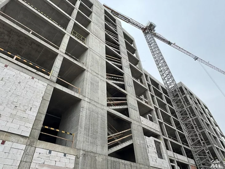 Сейчас на объекте идут кровельные и кладочные работы — корпус стараются накрыть к зиме.