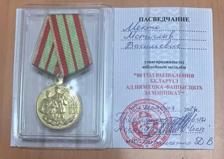 Павличенко выписал отличнику медаль «80 лет освобождения Беларуси от немецко-фашистских захватчиков».