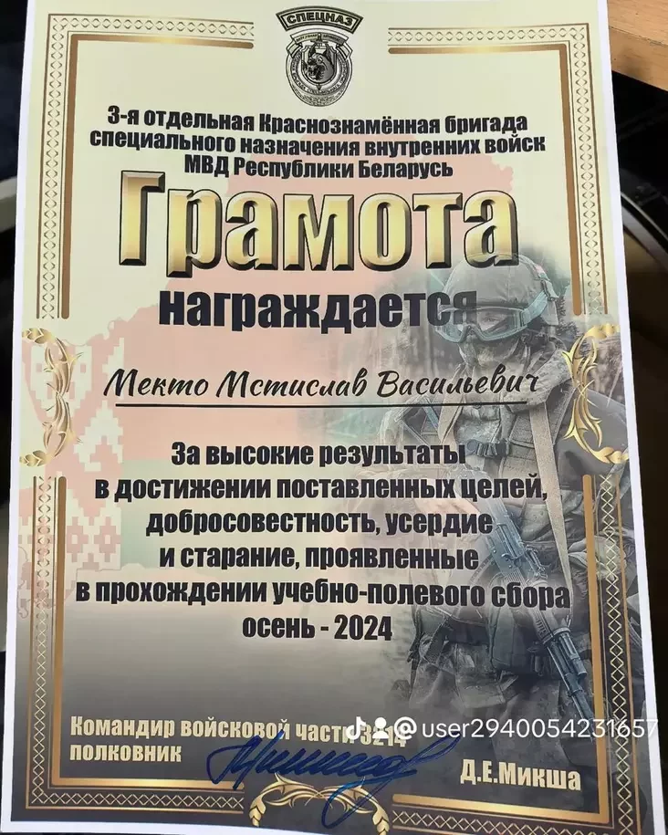 Как боец «Депутат» этот сын лейтенанта Шмидта стал участвовать в сборах военнослужащих запаса внутренних войск и получил в руки оружие, что в ситуации Мекто противоречит не только здравому смыслу, но и белорусскому законодательству.