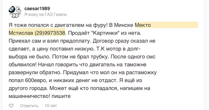 Но форумы автомобилистов помнят Мекто как человека, который в 2015‑м году «продавал» несуществующие двигатели, беря предоплату вперед, а потом утверждая, что двигатель якобы застрял на таможне. Деньги Мекто не возвращал, через форум искали других пострадавших для написания коллективного заявления о мошенничестве.