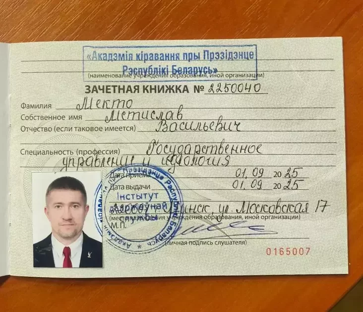 Для переподготовки нужно быть бакалавром — в декабре 2024‑го Мекто хвастался окончанием дистанционного отделения Горецкой сельскохозяйственной академии. Согласно белорусскому законодательству, человек с базовым образованием в университет поступить не может — требуется среднее или средне-специальное, но получение средне-специального после базового занимает три года.