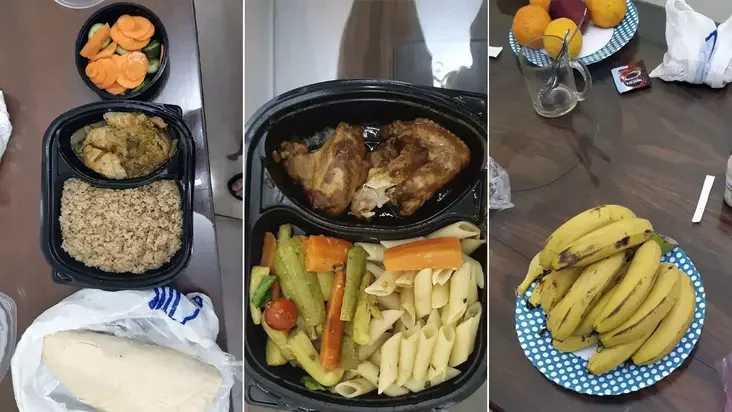 На обед нам привозили суп, говядину или курицу с гарниром, какие-то овощи и фрукты.