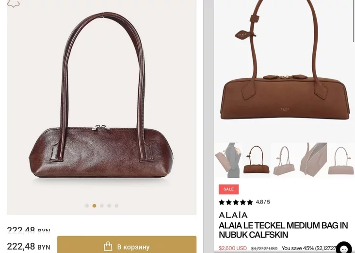 Ранее другая белорусская стилистка и фотограф Ирина Камыш рассказала в Treads, что увидела в «Галантэе» аналог сумки Le Teckel люксового модного дома Alaïa.