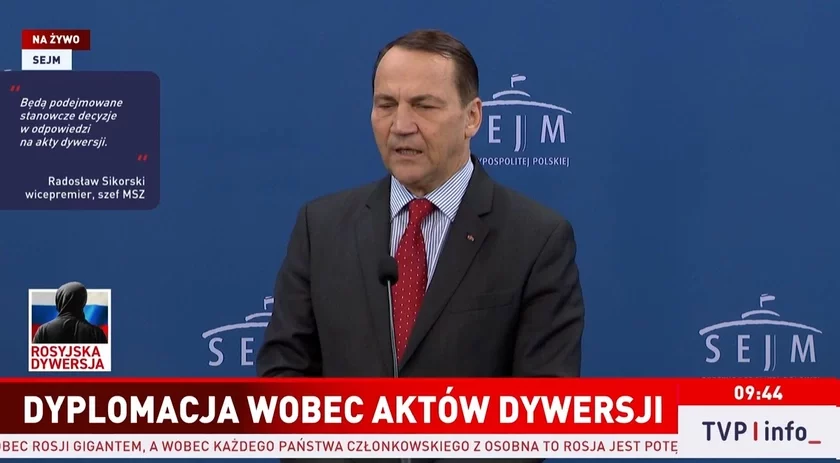 «Я заявил тогда, что если Россия не прекратит свои диверсионные атаки на Польшу, а Россия не только не прекратила, но и усиливает эти атаки. Как я уже сказал в своей речи, если целью шпионажа и диверсионной деятельности являются человеческие жертвы, то мы имеем дело уже не с диверсией, а с государственным террором. Поэтому это не будет нашим полным ответом, но я уже принял решение отозвать согласие на работу последнего российского консульства в Гданьске», — сказал он.