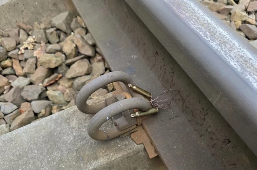 На железнодорожных рельсах в Польше обнаружили патроны, соединенные проводом