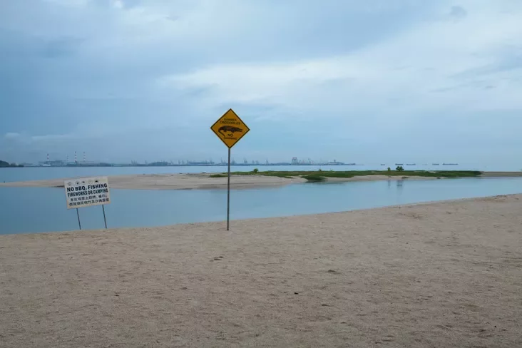 На пляже, который должен был стать курортной жемчужиной, установлены таблички, предупреждающие о крокодилах, что делает купание невозможным.