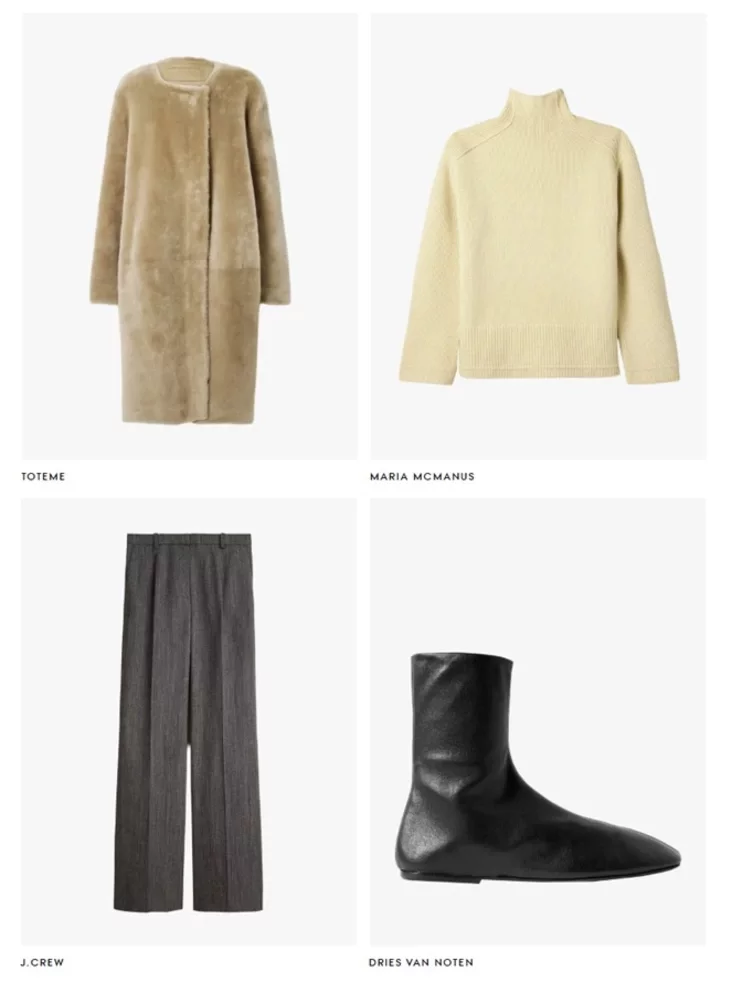 2. Пальто без воротника + классические брюки + яркая водолазка