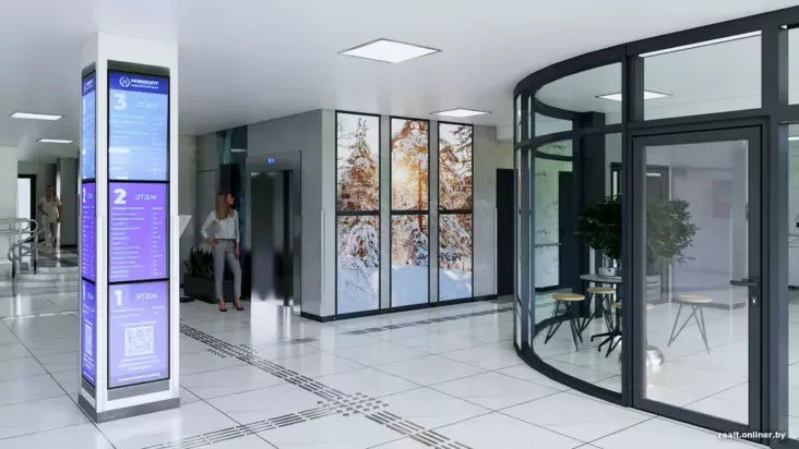 На первом этаже расположится просторный холл с регистратурой, зоной самозаписи, помещением для оформления больничных, буфетом и аптекой. На других этажах разместятся кабинеты врачей, отделения диагностики, лаборатории, стоматология.