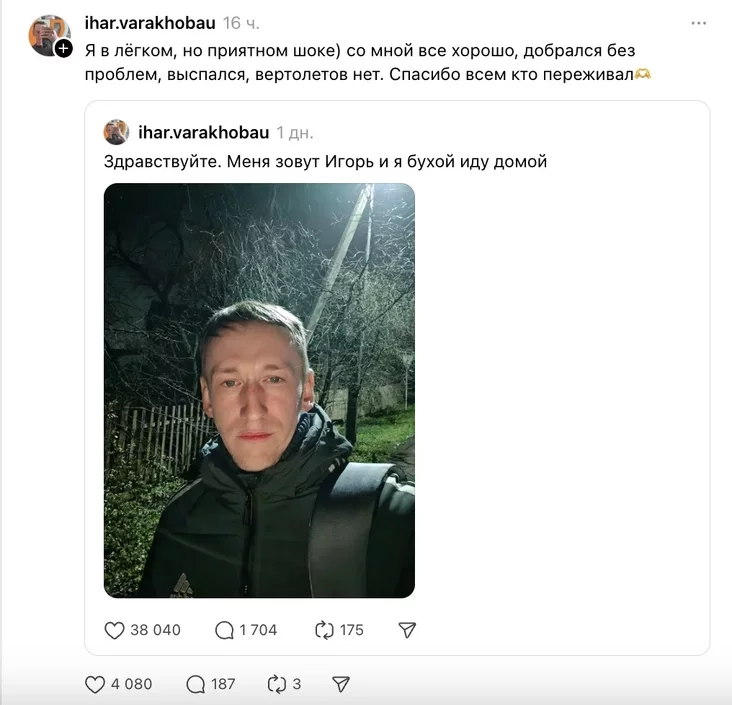 Пост пьяного витебчанина, который рассказал, что идет домой, набрал 650 тысяч просмотров — следил весь русскоязычный тредс
