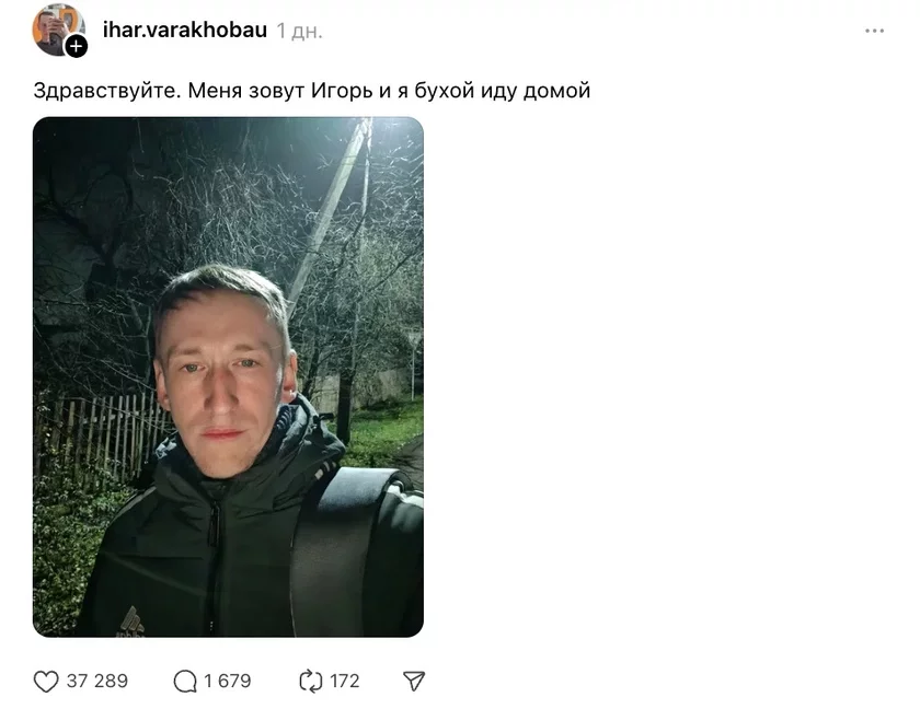 «Добрый день. Меня зовут Игорь, и я бухой иду домой», — написал витебчанин и проснулся знаменитым.