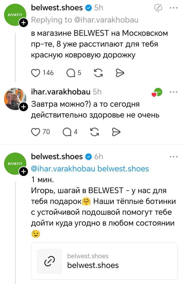 А «Белвест» отметил, что в одном из их витебских магазинов Игоря ждут тёплые ботинки в подарок.
