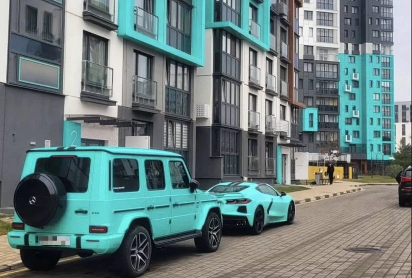 Тренд в Новой Боровой: бирюзовые авто под цвет фасадов вызвали ажиотаж в соцсетях