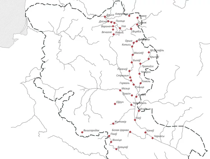 Полученная карта показывает мощный оборонительный пояс вдоль важнейших белорусских рек. На Подвинье это Дрисса, Дисна, Полоцк, Вороноч, Ула, Вечелье, Лепель, Озерище, Усвят, Сураж и Витебск. Далее линия идет по Днепру — Дубровно, Орша, Копысь, Могилев, Быхов, Рогачев, Стрешин, Горваль, Речица, Любеч, Киев. Восточный фланг держали замки по Сожу: Мстиславль, Кричев, Пропойск, Чечерск и Гомель. Также к «украине» относились Мозырь, Брагин и ряд замков, меньшая их часть — на территории современной Украины.