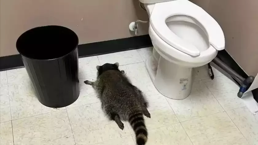 Пьяный енот устроил ночной дебош в магазине, а потом заснул в туалете