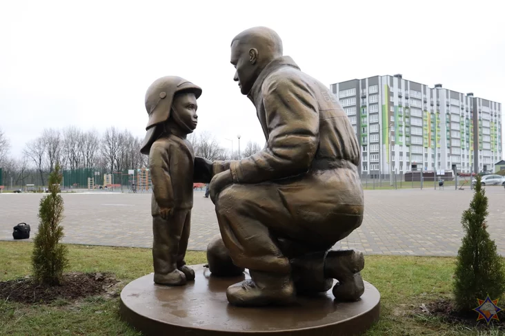 В Сенице под Минском установили скульптуру пожарного с ребенком ФОТОФАКТ