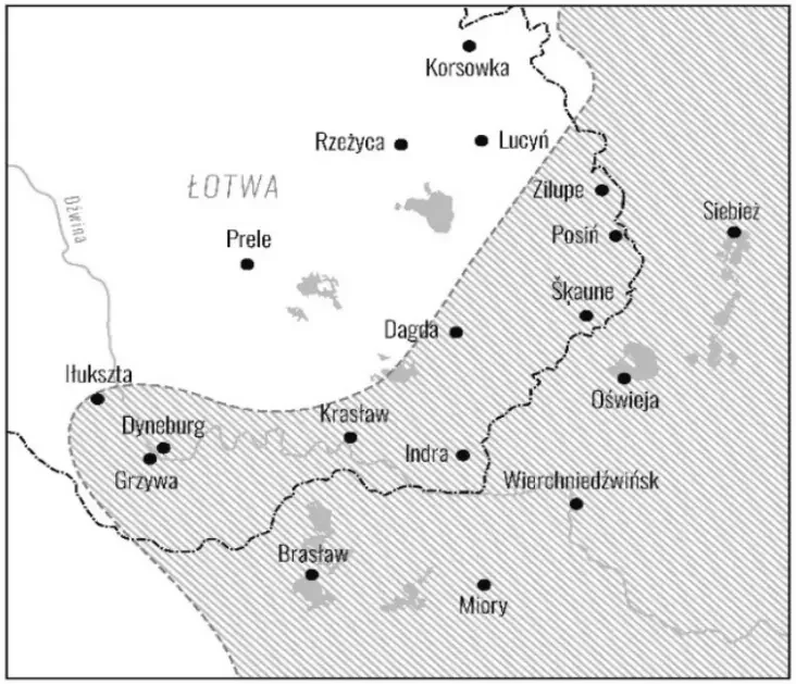 Во времена Российской империи административной границы между землями Латгалии и современной Беларуси не существовало, что способствовало свободному перемещению населения, общей экономической и культурной жизни. Двинск (Даугавпилс), Люцин (Лудза) и Режица (Резекне) были уездными городами Витебской губернии. По переписи 1897 года, белорусы составляли значительную часть населения этих уездов, а в некоторых волостях — абсолютное большинство.