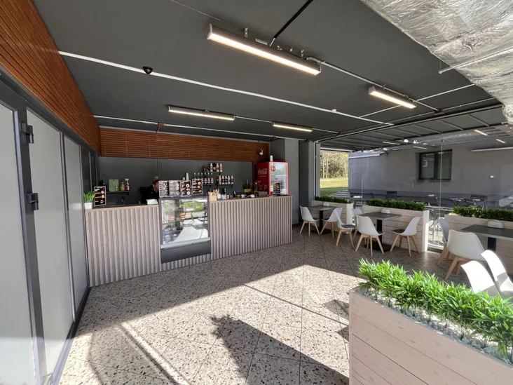 Летнее кафе в Хатыни работает с конца апреля до начала ноября. Меню здесь довольно разнообразное и демократичное по ценам. Например, картошку с колбаской можно заказать за 11 рублей, куриный бургер — за 10, драники — за 6 рублей, а десерт — за 7 рублей. Можно выпить латте или капучино за 6 рублей, или даже бокал глинтвейна за 7 рублей.
