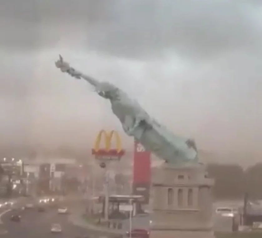 WATCH: Replica of the Statue of Liberty topples due to strong winds in Guaíba, Brazil pic.twitter.com/pMxN7KLu5y