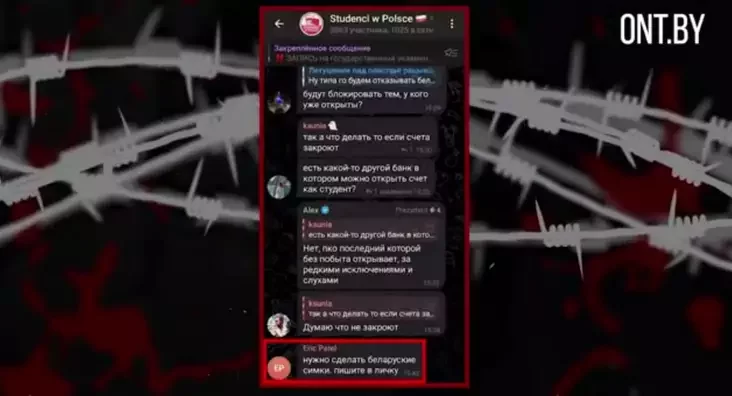 В репортаже ведущей Анастасии Марковой показали кадры с задержанием Сергея К., который с 9 декабря пытался купить много белорусских сим-карт и активировать их. Рассказывается, что мужчина настолько отчаялся, что раскидал клич о поиске симок во всех возможных пограничных и эмигрантских публичных чатах, а активировать одну из симок пытался в магазине при заставе Лидского пограничного отряда.