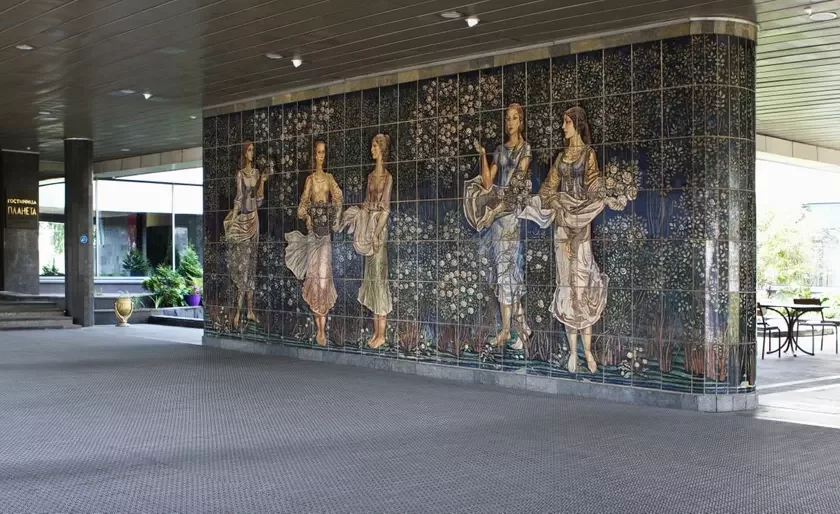 Стоит отметить, что ресторан гостиницы «Планета» является настоящей сокровищницей белорусского монументального искусства того времени.