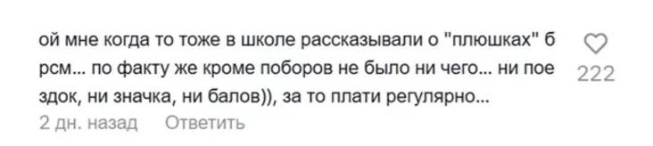 «Ой, мне когда-то тоже в школе рассказывали о «плюшках» БРСМ… По факту же, кроме поборов, не было ничего… Зато плати регулярно…»
