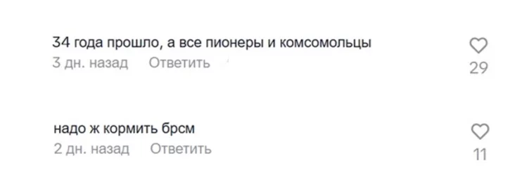 «34 года прошло, а все пионеры и комсомольцы», «надо ж кормить БРСМ».