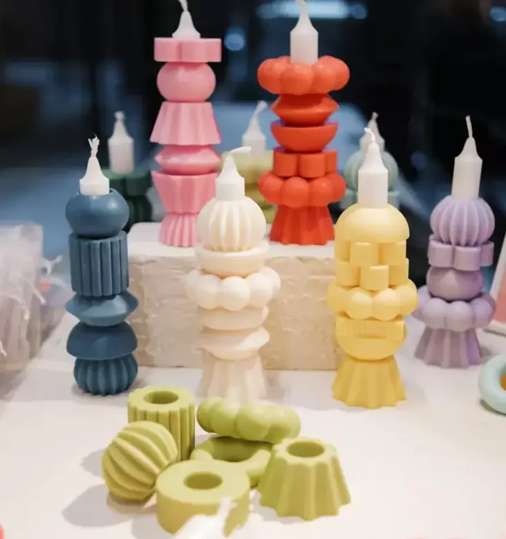 Заменить лампу можно и на более дешевый, но не менее эффектный вариант — свечи. Тем более, если они от бренда «Кроплі зор». Просто посмотрите на эти цветные башни-конструкторы!