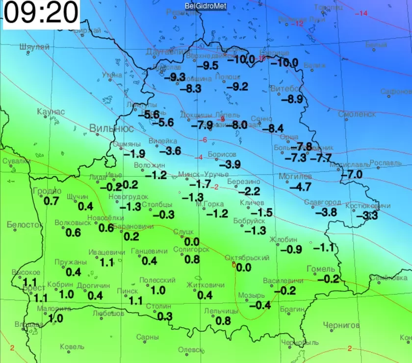 Сегодня утром на севере Беларуси было зафиксировано минус десять градусов мороза.