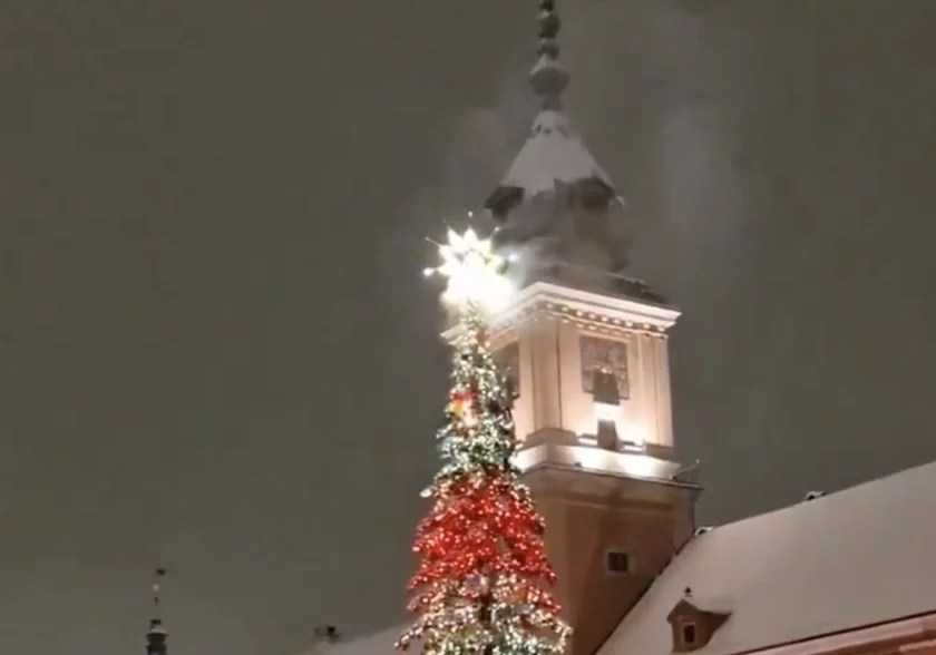 В Варшаве в новогоднюю ночь загорелась главная елка на Замковой площади.