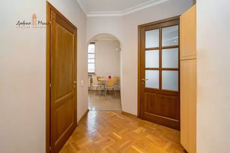 Ремонт здесь, исходя из описания, последний раз делали в 2015-м, когда проходил капитальный ремонт дома. Тогда же заменили старые радиаторные батареи на современные алюминиевые. Но концептуально отделка выглядит как из конца 1990‑х — начала 2000‑х годов, так как дверной проем, ведущий на кухню, имеет арку, популярную в те времена.