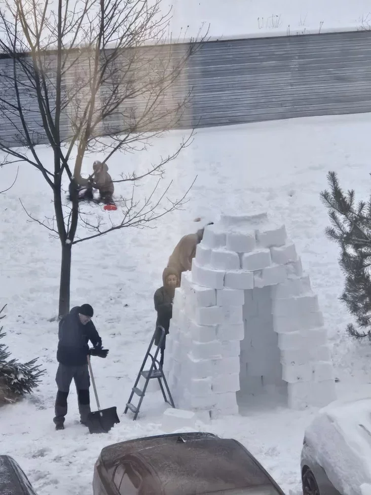 В комментариях ему ответили, что это сооружение из снега — плод совместного творчества детей и взрослых: