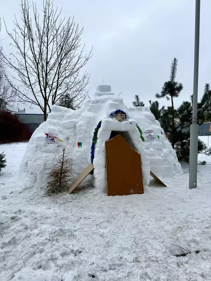 В одном из минских микрорайонов заметили сооружение из снега, которое по своей идее напоминает традиционное жилище североамериканских эскимосов — иглу.