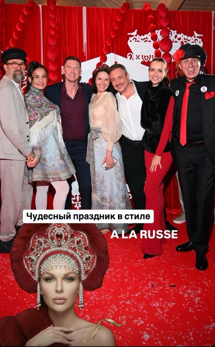 Правда, тему именинница выбрала довольно специфическую — «русская девица». На праздничном баннере можно увидеть фото Ольги в большом кокошнике и надпись на русском языке: «Сказ о девице Ольге 40 лет от роду».
