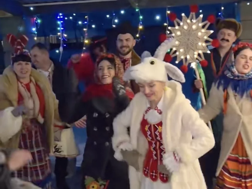 «Я думала, уже никто не ходит с песнями по домам, в моем детстве ходили, жаль, традиции уходят», — заметила одна из комментаторов. На что с ней не согласились. И в ответ прислали целых несколько рождественских инсценировок с Козой, которые устраивали в подъездах Витебской области и взрослые, и дети.