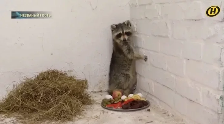 Енот любит курицу, виноград, орешки, яблоки. Любимая еда — сырые яйца. Сладости ему передают и гродненские таможенники.