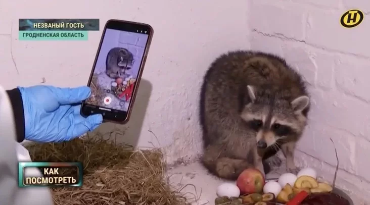 Трижды в день сотрудница ветстанции Людмила Голуб приходит проведать Сеню (так назвали енота). На видео видно, как тот испуганно вжимается в стенку. Но, отмечают на ветстанции, его состояние уже значительно лучше, чем было.