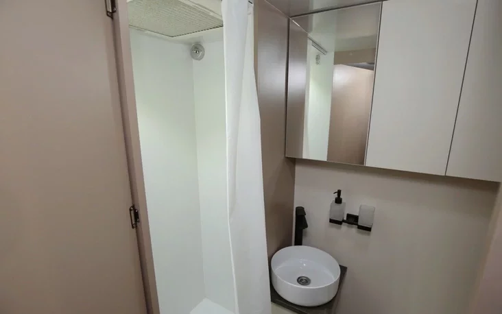 Есть несколько розеток в изголовье, разъемы USB и Type-C, подвижные лампы для чтения в темное время суток. Постельное белье для спальных мест также входит в комплект.